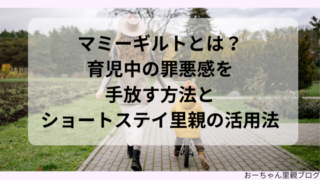 子どもを預けたい方向け マミーギルトとは?育児中の罪悪感を手放す方法とショートステイ里親の活用法 「お迎えが遅くてごめんね」「手抜き料理ばかりでごめんね」——そのマミーギルト、抱え込まないで。「ごめんね」を「ありがとう」に変える言葉かけなど今日からできる5つの対策と、限界を感じたときに使えるショートステイ・里親一時預かりの公的サポートをわかりやすく紹介します。 2026.03.19 子どもを預けたい方向け