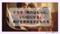 日誌には保育士さんに手伝ってもらって着替えができた、お友達と仲良く遊べた、スプーンで自分でご飯を食べられた、歯磨きの時もおとなしくできたなど、たくさんの「できること」が記録されていた。読みながら泣くみほちゃんに「みほちゃんの想いはちゃんと届いていたんだよ」と主人公は伝える。